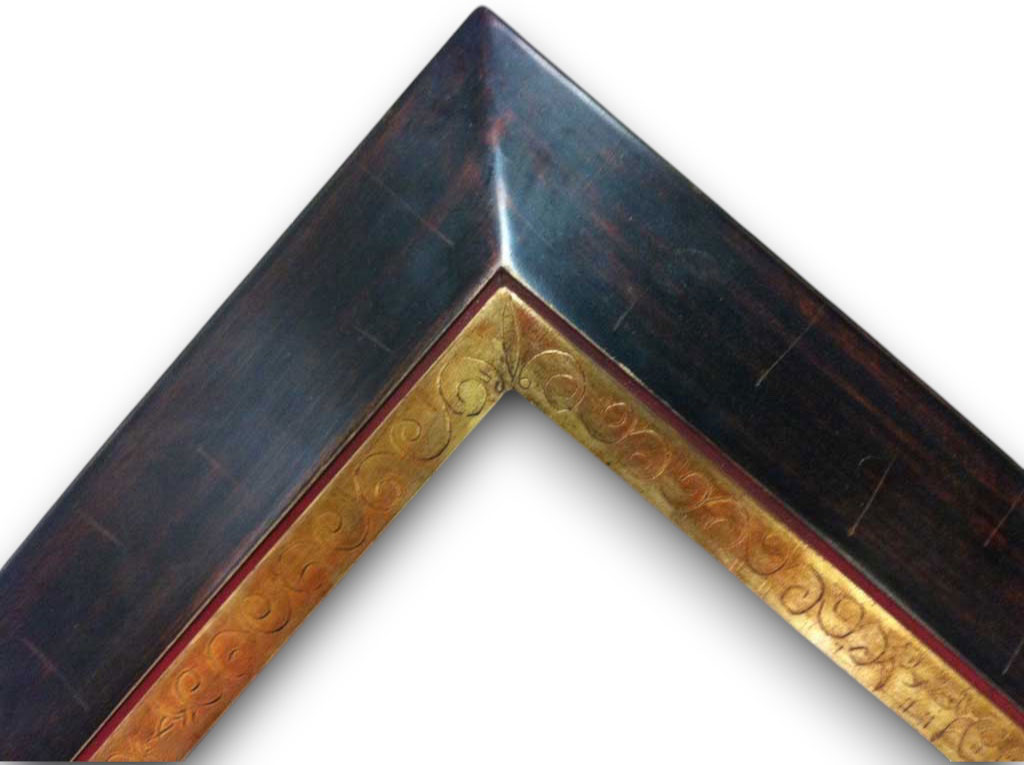 Noir antique usé griffé gravé or